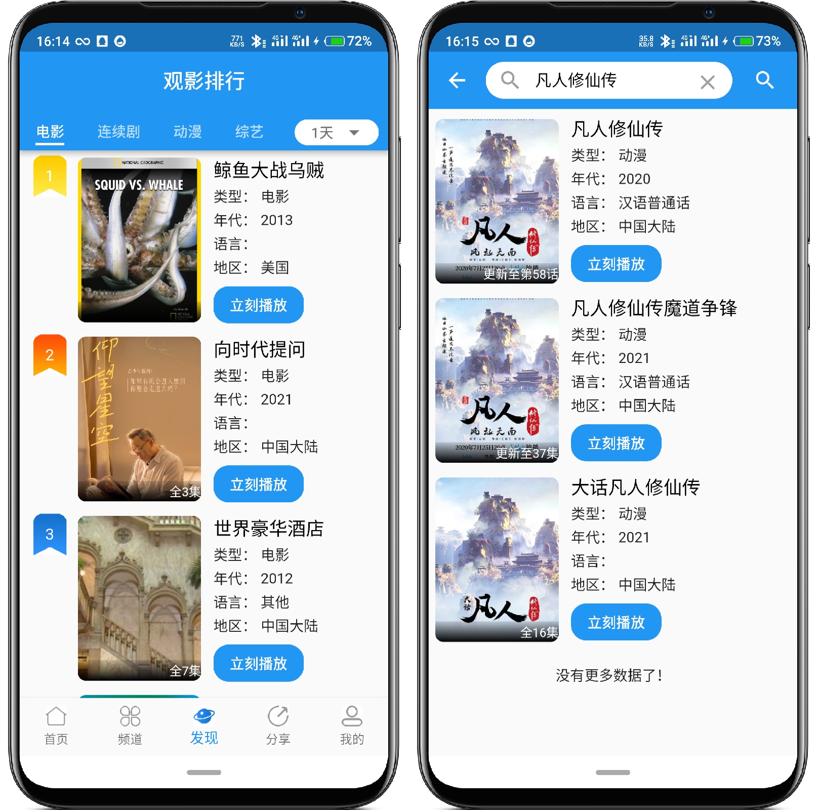 1、资源丰富:超全的影视库,可观影看剧追番看电视直播,不用付费,简单便捷;
