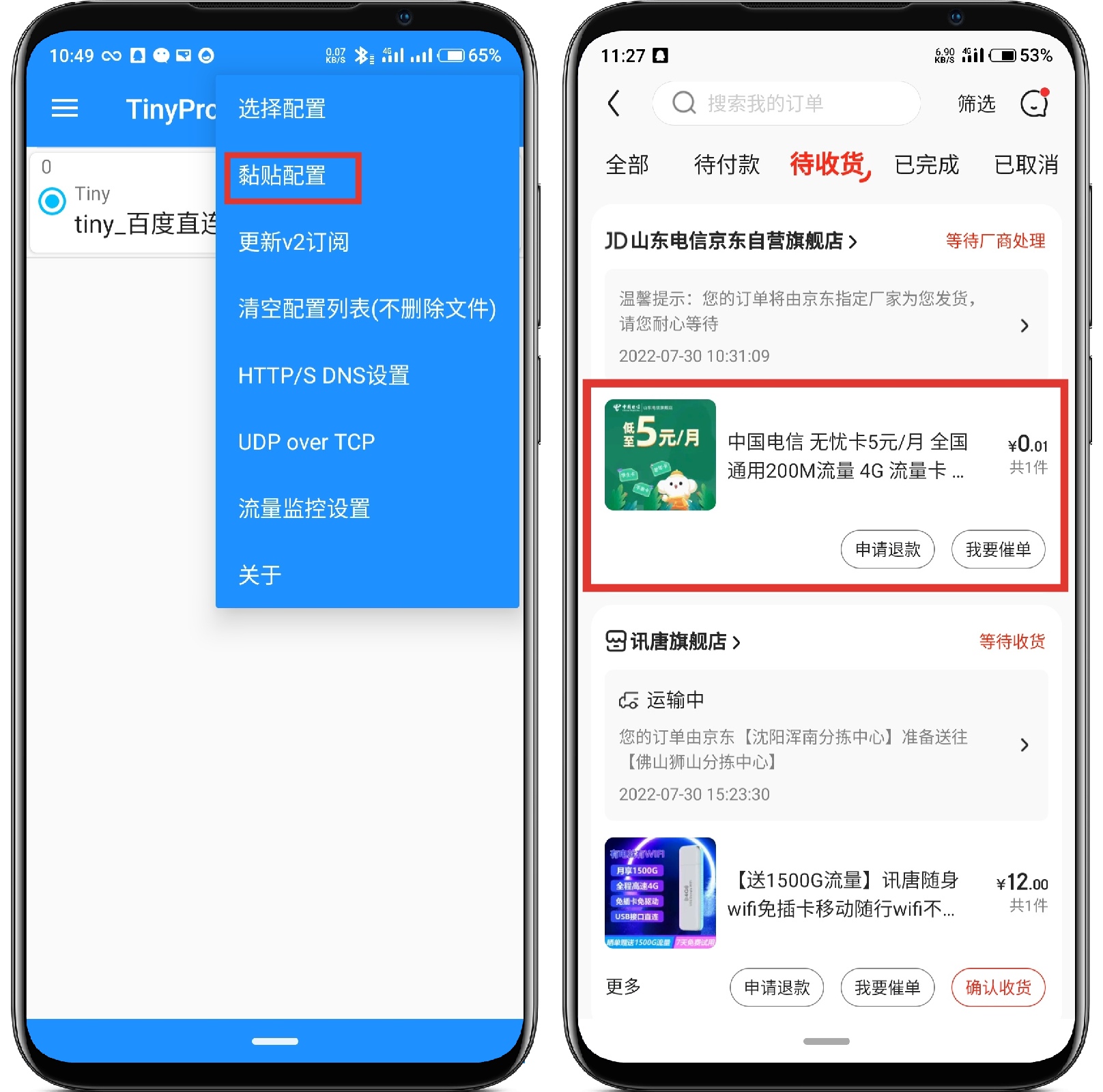 电信停机保号卡使用代理软件之后,一个月不限速,无限流量。