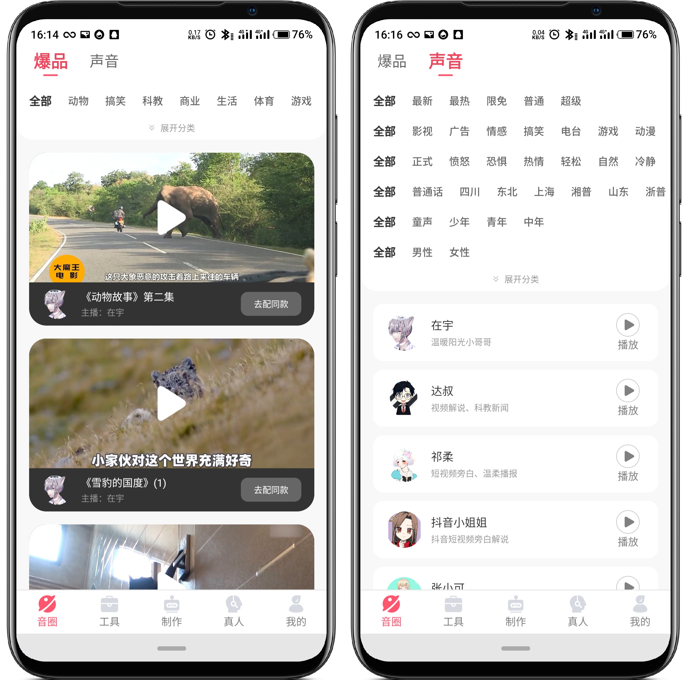 配音神器是一款专注于文字转语音的免费智能语音合成软件,采用强大的语音合成技术,打造简单高效的配音服务平台。更有众多真人广告促销成品录音,一键导出。满足大家的配音需求。
