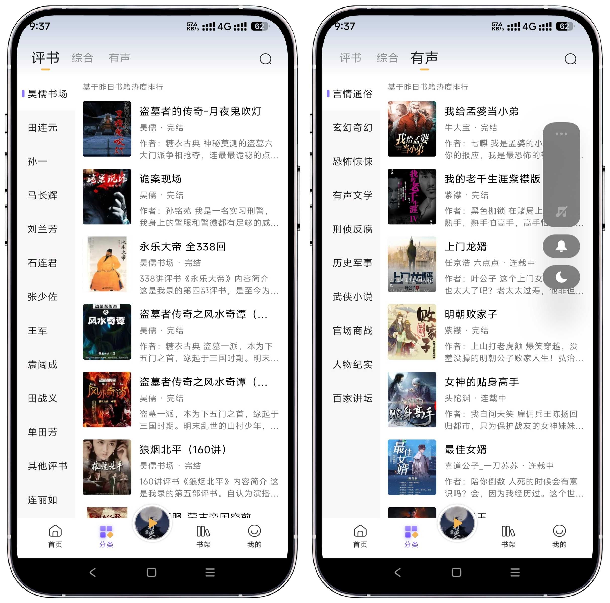 📚软件内置资源非常丰富,热门小说、广播剧、评书、相声、小品等应有尽有。